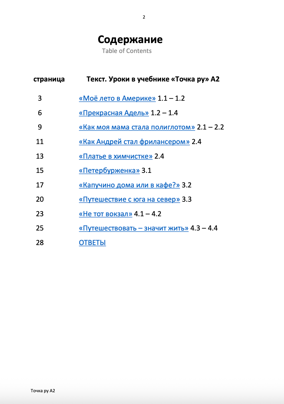 Тексты основаны на лексике и грамматике учебника ТОЧКА РУ А2, но могут использоваться и независимо от него.